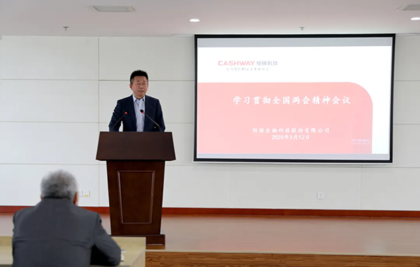 2025-06-303月12日下午,在全國兩會勝利閉幕后,恒銀科技第一時間召開學(xué)習(xí)貫徹全國兩會精神宣講會,全國政協(xié)委員,公司黨委書記、董事長江浩然宣講全國兩會精神。會議由黨委副書記梁曉剛主持,公司領(lǐng)導(dǎo)班子成員、在津總部中層管理人員等參加。